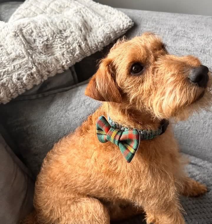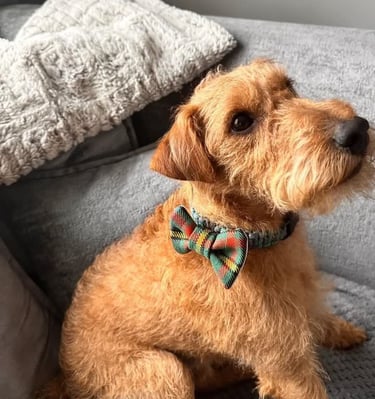 The Harris tweed bow tie is adorable! My dog looks so dapper during our walks. Thank you!